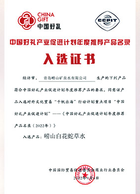 2022年华体平台崂山白花蛇草水荣获中国好礼证书