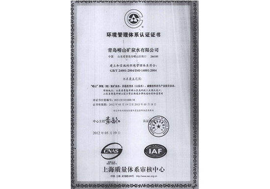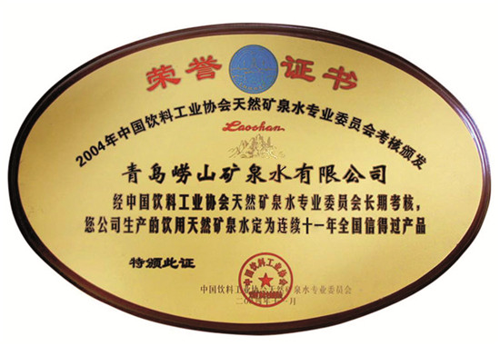 2004年11月 崂山矿泉水被中国饮料工业协会天然矿泉水分会评定为“连续十二年全国信得过产品”