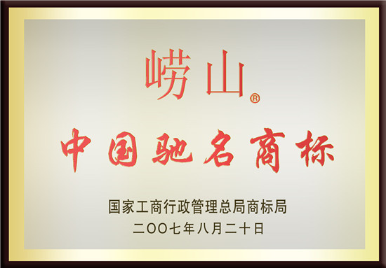 2007年8月 崂山矿泉水荣膺“中国驰名商标”荣誉称号