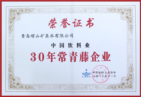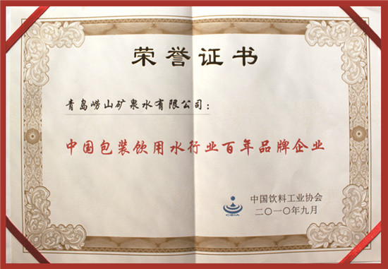2010年9月 崂山矿泉水被中国饮料工业协会天然矿泉水分会评定为“百年品牌”企业