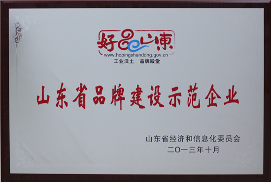2013年10月 山东省品牌建设示范企业