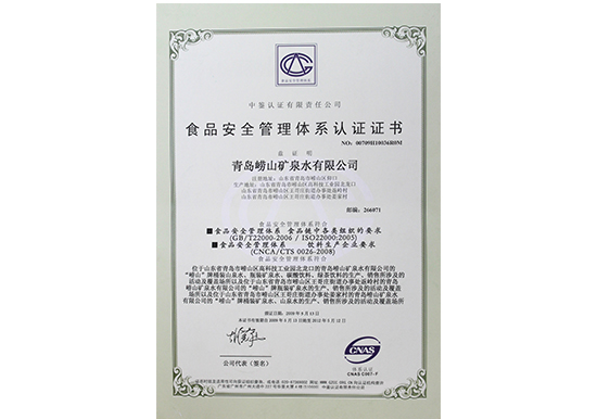2009年5月 ISO22000食品安全管理体系认证