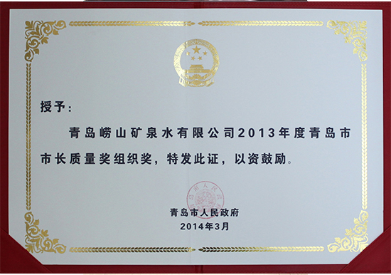 2014年3月 青岛市市长质量奖证书