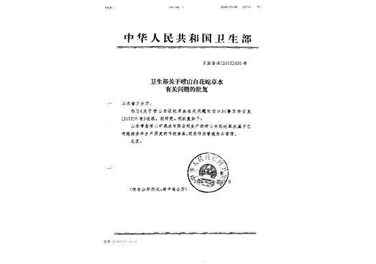 2012年10月 卫生部关于崂山白花蛇草水有关问题的批复