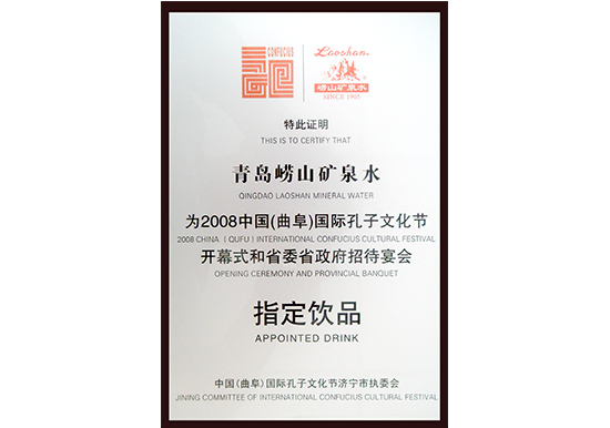 2008年 崂山矿泉水荣膺“中国国际孔子文化节祭孔大典”指定饮品