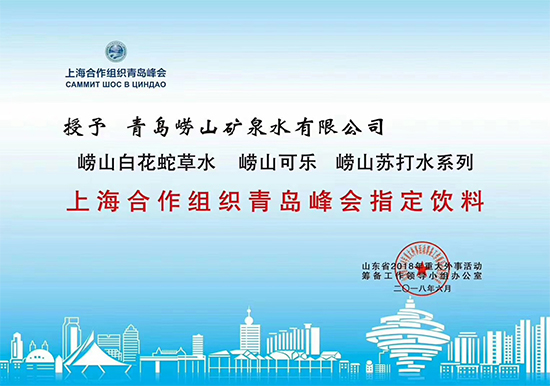 2018年6月,崂山白花蛇草水 崂山可乐 崂山苏打水系列成为上海合作组织青岛峰会唯一指定饮料