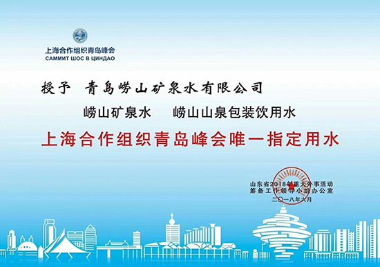 2018年6月,崂山矿泉水 崂山山泉包装饮用水成为上海合作组织青岛峰会唯一指定用水