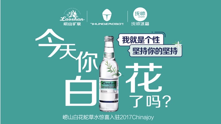 2017ChinaJoy于2017年7月27日—7月30日在上海新国际博览中心拉开帷幕。崂山白花蛇草水联手统帅冰箱、雷神电脑共同亮相CJ展,精美的展台、新颖的互动和“神水”的名气吸引了众多参展人员目光。